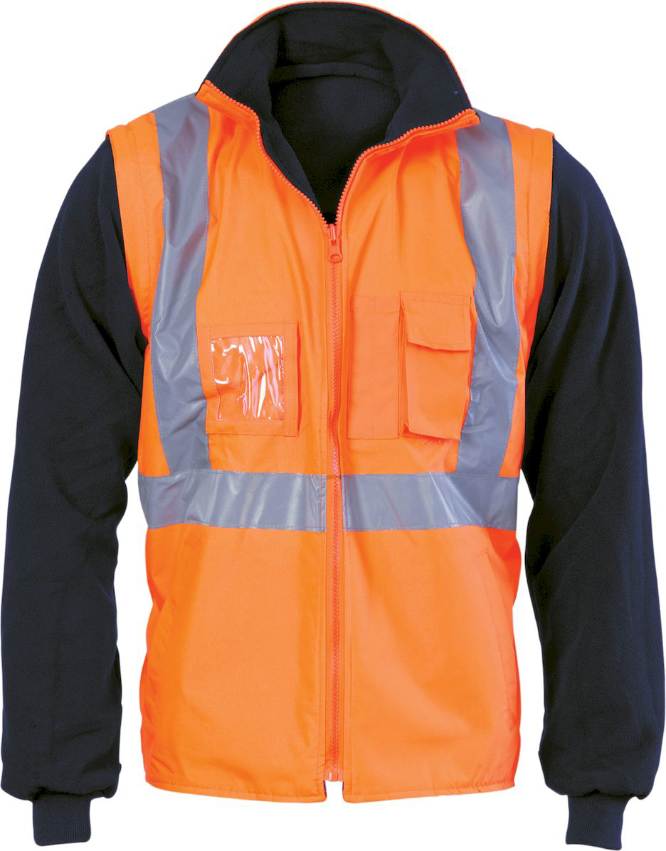 DNC Workwear Hi Vis Day/Night “4 In 1” Taped Zip Off Sleeve Reversible Vest - Cross Back Reflective Tape (3994)